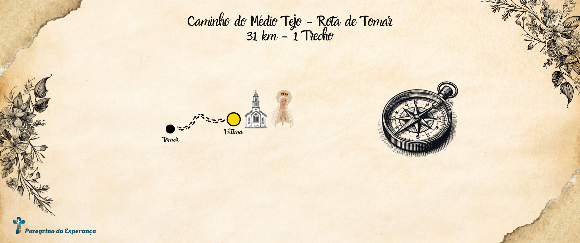 O trecho do Caminho do Médio Tejo – Rota de Tomar, nos Caminhos de Fátima, tem início na histórica cidade de Tomar e termina em Fátima, totalizando aproximadamente 31 quilômetros de percurso. Trata-se de uma rota de média extensão, que pode ser completada em um único dia de caminhada, mas que exige preparação e disposição, uma vez que o caminho apresenta subidas e descidas ao longo do percurso. O nível de dificuldade é considerado moderado, já que, apesar de não ser um trajeto extremamente longo, a altimetria variável e alguns trechos mais exigentes fisicamente podem desafiar o peregrino. A sensação de progresso é constante, e cada quilômetro percorrido aproxima o caminhante do destino final, alimentando a fé e a determinação.